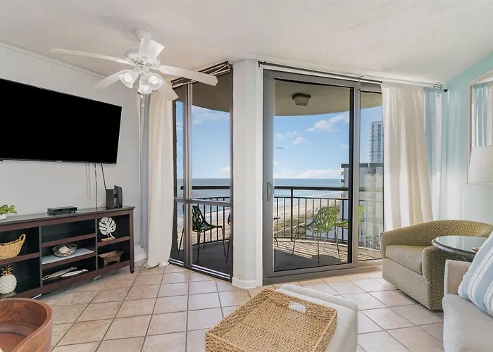 The beachfront Stylish Escape Oceanview Suite At Meridian Plaza! 1405 Myrtle Beach is 10 minutes' walk from Captain Hooks Adventure Golf and welcomes guests with a hot tub. This apartment comes with an outdoor swimming pool and a terrace overlooking the sea.